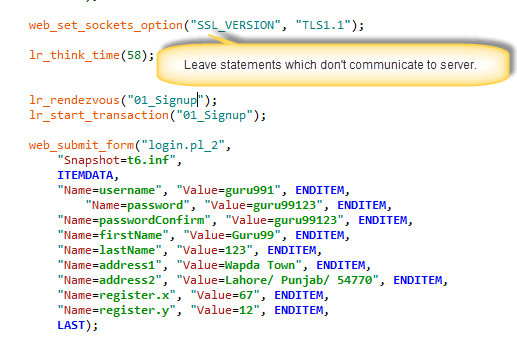- 在应用事务时,请确保没有夹杂**think_time**语句,否则您的事务将始终包含该时间段。