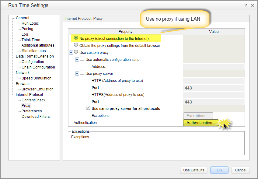 最好完全从您的测试环境中删除代理——这会使测试结果不可靠。但是,您可能会遇到不可避免的情况。在这种情况下,LoadRunner确实为您提供了代理设置。