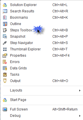 您可以在“视图”->“步骤工具箱”下找到步骤工具栏。