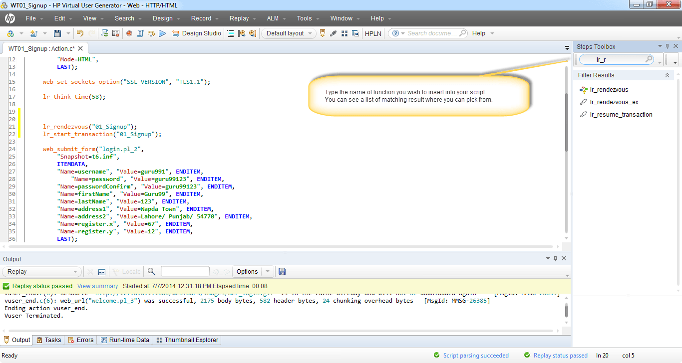 恭喜您。您已完成VUGen脚本的配置。不要忘记为所有VUser脚本配置它。