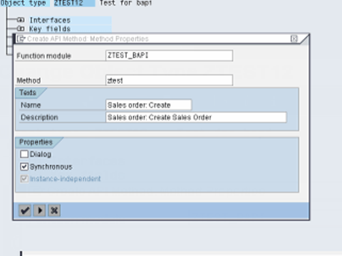 - Radio buttons:Dialog、Synchronous、Instance-independent。BAPI 通常是同步实现的。