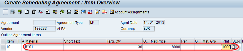 - 输入供应商/协议类型(LP - 计划协议)/协议日期。