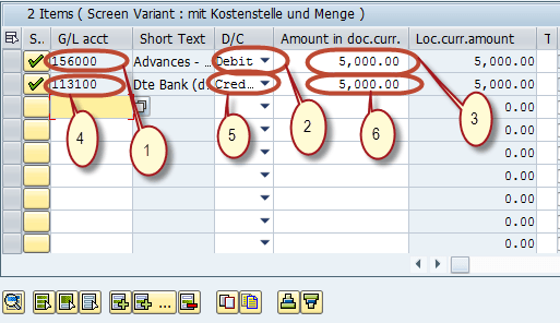 步骤 7) 检查状态栏中的凭证编号以确认过账