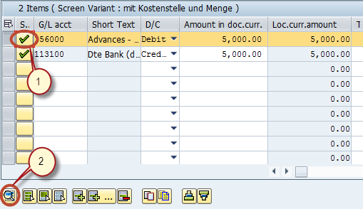 - 选择借记行项目