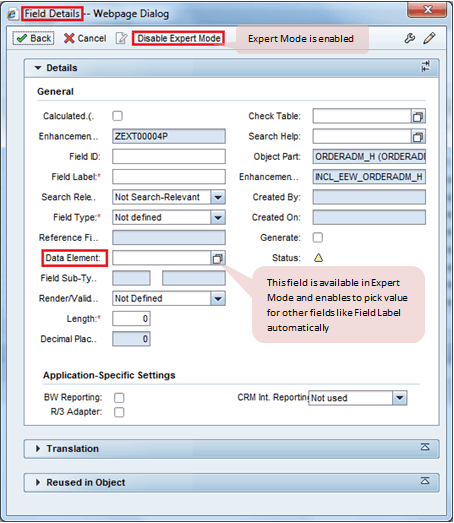 - 可以使用“启用专家模式”按钮,以便框架从字段定义中使用的数据元素中获取属性