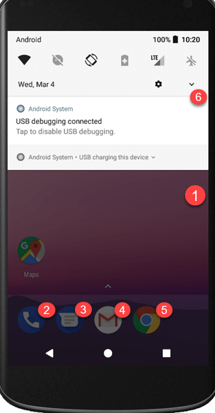 - 主屏幕:Android 主屏幕包含常用应用程序的启动器图标,最终用户可能希望快速访问。您可以通过单击这些应用程序的启动器来启动应用程序。屏幕的最顶部是显示网络、电池电量、日期和时间的小部件。