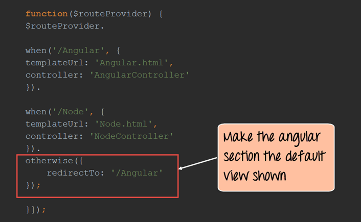 - 可以为 angular.JS 路由设置默认路由。它用于确定将向用户显示的默认视图。