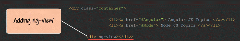 - 最后是包含 ng-view 指令,它通常会放在一个 div 标签中。当选择相关路由时,它将用于注入视图的内容。