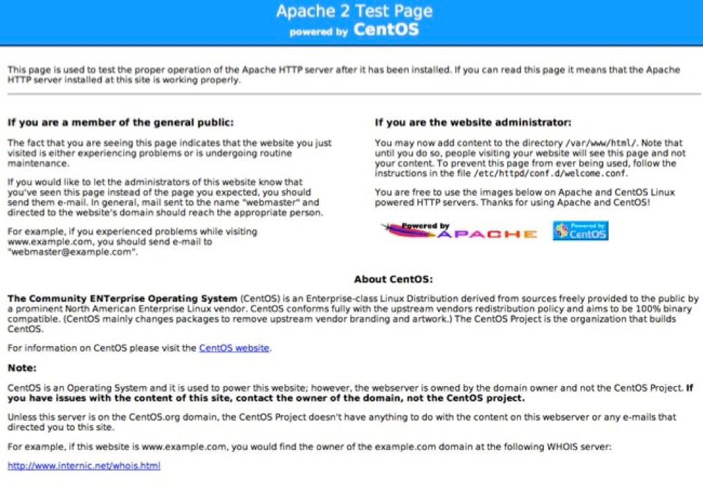安装完成后,您可以使用您喜欢的浏览器浏览 Web 服务器的默认页面。如果您的服务器上启用了防火墙,您必须在操作系统防火墙上为端口 80 设置例外。您可以使用以下命令打开端口 80。