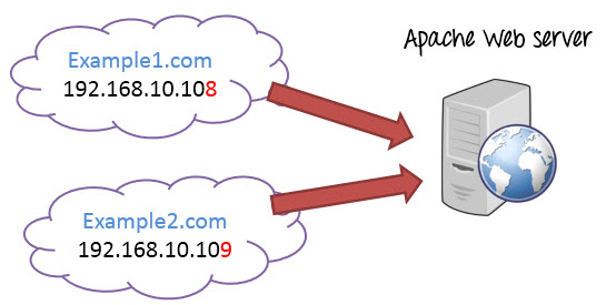 Listen 192.168.0.100:80 <VirtualHost 192.168.10.108:80> ServerAdmin webmaster@example1.com DocumentRoot /var/www/html/example1.com ServerName www.example1.com </VirtualHost> <VirtualHost 192.168.10.109:80> ServerAdmin admin@example2.com DocumentRoot /var/www/html/example2.com ServerName www.example2.com </VirtualHost>