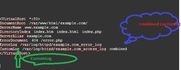 您可以看到下面提到的虚拟主机配置,生成的日志将是该虚拟主机的自定义日志,格式将是组合格式。