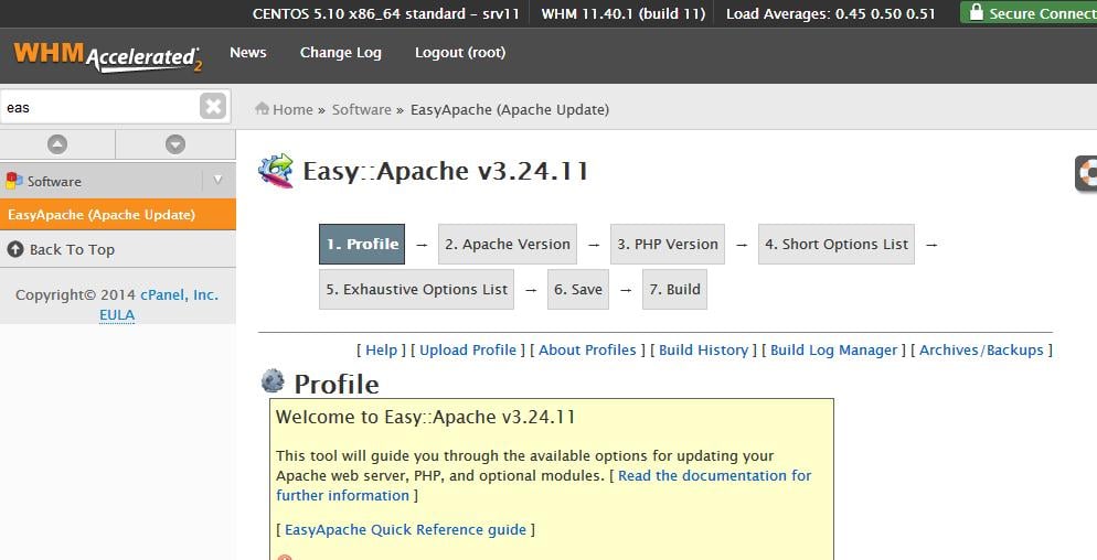 如果您必须在普通的 Linux 平台上重新编译您的 Web 服务器,例如 Apache,您必须手动选择/搜索所需的模块。cPanel 提供了 Easyapache 功能,这是一种基于脚本的 Web 服务器编译方法。