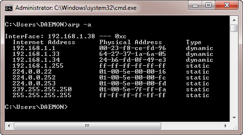 arp –a