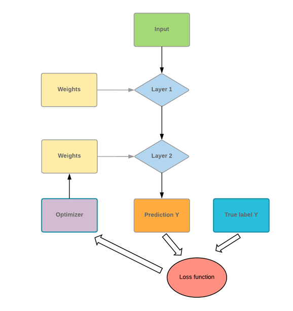 神经网络将输入数据传递给一系列层。网络需要使用损失函数来评估其性能。损失函数为网络提供了它需要遵循的路径,然后才能掌握知识。网络需要借助优化器来改进其知识。