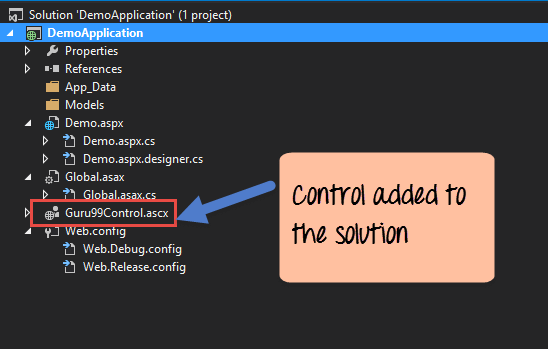 您将在解决方案中看到已添加的“Guru99Control”。