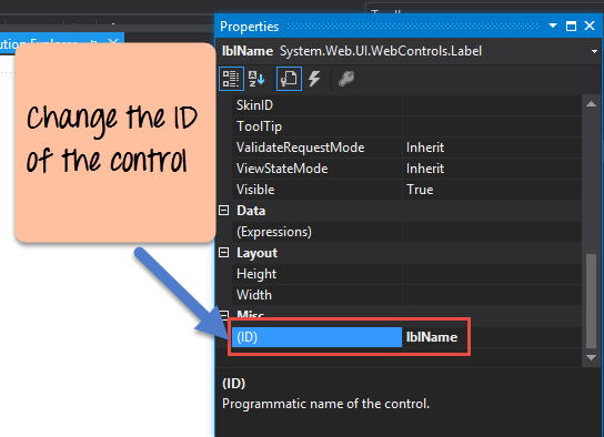 同样,也将控件的 ID 属性值更改为 lblName。通过为控件指定有意义的 ID,在编码阶段访问它们会更容易。如下所示。