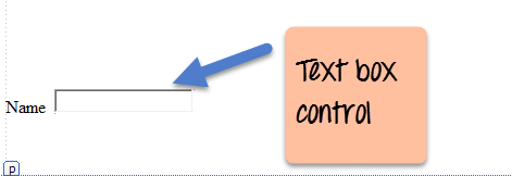 Label 控件用于在窗体上向用户显示文本或消息。Label 控件通常与其他控件一起使用。常见的例子是,Label 和 textbox 控件一起添加。Label 向用户指示将在 textbox 中填写什么。让我们通过下面的示例了解如何实现这一点。我们将使用一个名为“name”的 label。它将与后续部分中将添加的 textbox 控件结合使用。