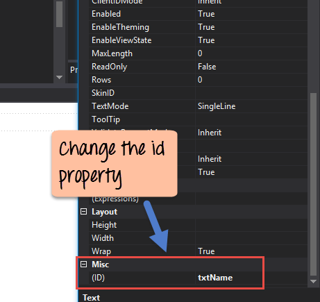 步骤 2) 添加 Textbox 后,您需要更改 ID 属性。