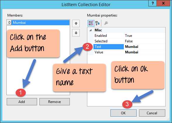 步骤 3) 现在会出现一个对话框,您可以在其中将列表项添加到 listbox 中。