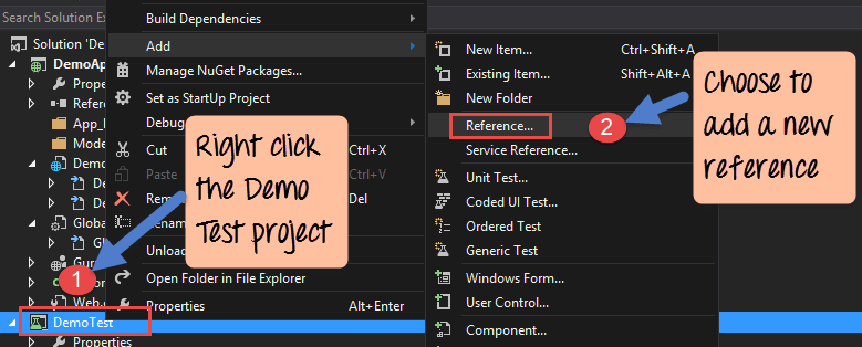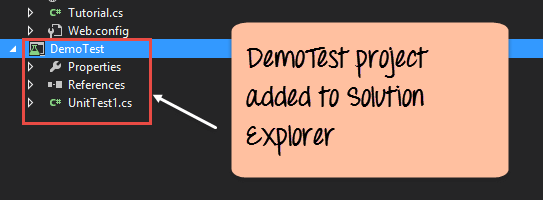 第 6 步) 现在让我们将我们的测试项目添加到 Demo Application。这通过 Visual Studio 完成。