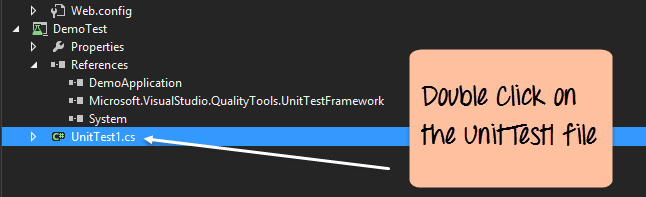 - 为此,请首先双击“解决方案资源管理器”中的 UnitTest1(Visual Studio 创建测试项目时会自动添加 UnitTest1 文件)文件。