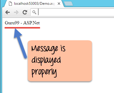 从输出中,您可以看到显示的消息“Guru99 – ASP.Net”。