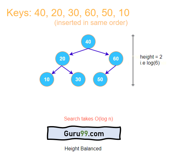 这里,键是相同的,但由于它们以不同的顺序插入,因此它们占据不同的位置,并且树的高度保持平衡。因此,对于树中的任何元素,搜索时间都不会超过O(log n)。现在很明显,如果插入得当,树的高度可以保持平衡。