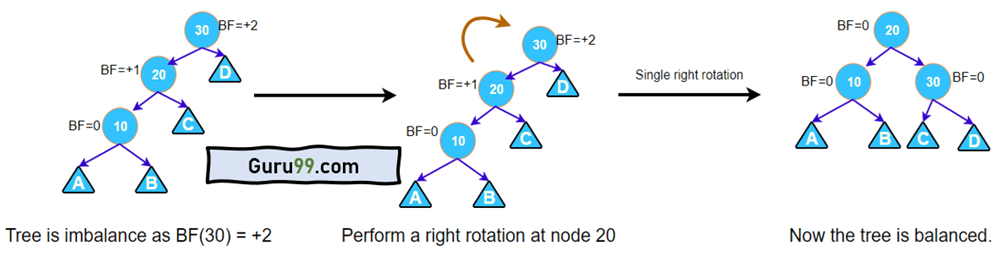 执行一次右旋转。当一个节点的平衡因子为+2,并且其左孩子的平衡因子为+1时,会识别出这种类型的旋转。