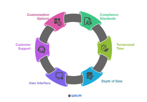 在Guru99,我们进行广泛的研究,以提供基于实际测试的准确、公正的产品评论。在此次评估中,我们的团队投入了 215 多个小时,分析了 25 多个背景调查工具,以汇编一份顶尖软件的可靠列表。我们优先考虑提供安全、快速、可靠的服务,并满足各行业招聘需求的公司的。确保安全、法律合规和效率始终是我们流程的核心。每款选定的工具都符合行业标准,并通过持续的性能和透明度来支持用户信任。我们在评估工具时,会根据以下因素进行选择: