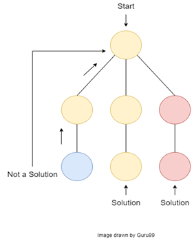 步骤 6) 回溯:如果当前选项未能解决给定问题,它将返回到之前的状态。然后它会考虑新的选项来解决给定问题。