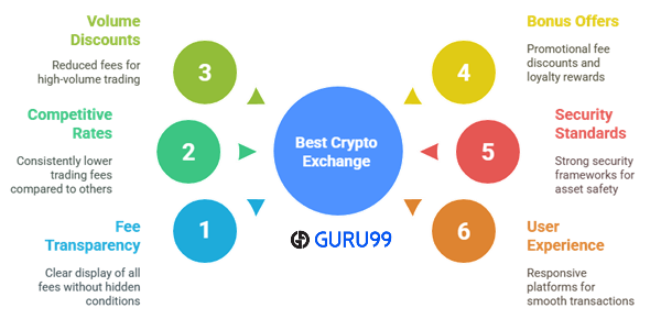 在Guru99,我们致力于通过严格的编辑流程提供准确、相关和客观的信息,以支持您在加密货币领域的决策。选择费用最低的最佳加密货币交易所至关重要,因为费用直接影响您的整体盈利能力。我们的团队花费了超过80个小时评测了30多个加密货币交易所,以确定提供有竞争力的费用、强大的安全性、用户友好的界面和可靠服务的平台。这份精选列表包含了成本最低、功能最有用的交易所,以确保安全和有回报的交易体验。我们在评测工具时关注以下因素: