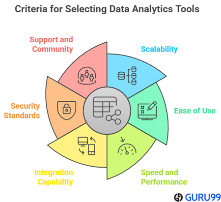 在Guru99,我们对可信度的承诺驱动着每一项编辑决策,以提供准确、相关和客观的内容。选择最佳数据分析工具需要超过110小时的实际测试和对40多个平台的比较。我们优先考虑可扩展、精确且针对现实效率优化的解决方案。我们的专家团队确保每项推荐都是最新的,并提供功能和价格的清晰细分。本指南是寻求可靠的、始终如一地提供高性能的分析工具的专业人士和决策者的宝贵资源。在审查工具时,我们根据性能、可用性、支持和长期价值关注以下因素。
