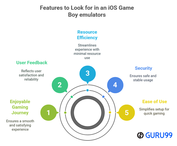 在Guru99,我们致力于通过严谨的编辑流程提供可信、准确和客观的信息。在投入超过 78 小时测试了 32 多款 iOS 版 Game Boy 模拟器后,我们确定了免费和付费选项,它们都提供可靠的性能和用户友好的界面,从而增强了整体游戏体验。这些模拟器通过无缝兼容性和以用户满意度为设计重点,在现代 iOS 设备上重现了经典的复古游戏体验。我们的推荐优先考虑安全性、功能性和怀旧感,以确保顺畅愉快的游戏之旅。我们在审查工具时,重点关注以下因素。