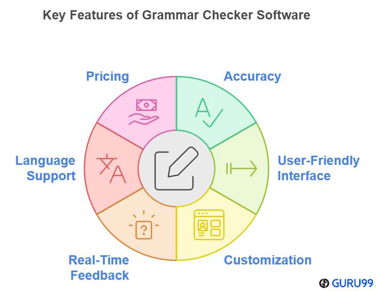 在 Guru99,我们通过严格的内容创建和审查流程,专注于准确、相关和客观的信息,从而优先考虑可信度。在对 36+ 款最佳免费语法检查软件进行72 小时以上的研究后,我整理了一份同时提供免费和付费选项的工具列表。这份全面指南涵盖了深入的功能、优缺点,提供了宝贵的见解,以帮助您选择最合适的语法工具。我们考虑了可提高写作准确性的关键功能,提供了增强语言技能的解决方案,并支持在选择最佳语法检查软件时做出明智的决定。
