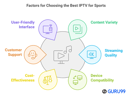 在 Guru99,我们的目标是提供可靠且经过充分研究的 IPTV 提供商评论,以帮助您做出明智的决定。我们经验丰富的团队确保准确性和透明度,提供对 IPTV 格局的专家见解。选择最佳体育 IPTV 需要仔细考虑能够为体育迷提供高质量和可靠服务的供应商。经过 120 小时的研究,我们整理了值得信赖的 IPTV 选项,以增强您的体育流媒体体验。请查看以下重要因素,这些因素可能有助于确保您享受无缝流媒体和最有效的服务,满足您的需求。