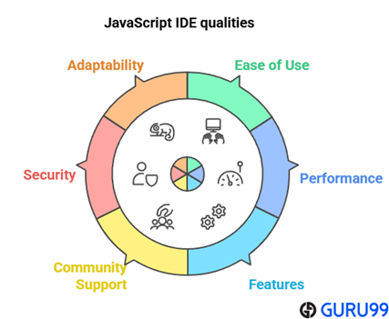 在Guru99,我们对信誉的承诺促使我们提供准确、相关和客观的信息。我们的编辑流程确保了**严格的内容创建和审查**,提供了可靠的资源,让您可以自信地回答您的问题。在花费了90多个小时并**审查了30多个工具**之后,我们的团队精心制作了最佳免费JavaScript IDE和编辑器的富有洞察力、最新的比较。我们选择每个IDE是因为它的适应性、可靠性和在各种开发需求下的优化性能。我们选择的每个工具都因其有用性、频繁更新以及提高生产力的能力而脱颖而出。在审查工具时,我们关注以下因素。