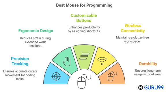在 Guru99,我们根据严谨的研究和实际测试,优先提供准确公正的评论。经过 210 多个小时的研究和分析 27 种选项,我创建了一份关于 最佳编程鼠标 的专业指南。选择合适的鼠标对于效率和舒适度至关重要。精度和人体工学在增强您的编码体验方面起着关键作用。本指南可能有助于您做出明智的选择,并找到满足您需求的完美鼠标。