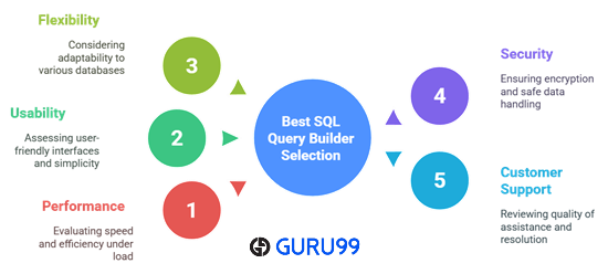 在Guru99,我们致力于提供值得信赖的高质量内容,专注于准确、相关和客观的信息。这本关于最佳 SQL 查询生成器和生成器工具的综合指南是经过对 46 多个工具进行 240 多个小时的彻底分析的结果。它包括功能、定价和实际应用的详细分解,以支持初学者和高级用户。我们的团队仔细评估了每个工具的性能、可用性和灵活性,以帮助您简化数据准备工作流程并提高生产力。我们在审查工具时,会根据以下因素进行重点考量: