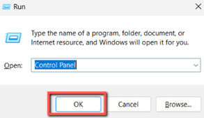 步骤1)首先按Windows+R,输入“控制面板”,然后按Enter/OK。