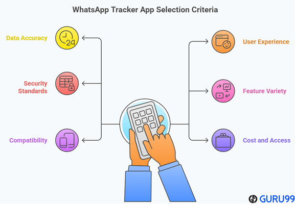 在Guru99,我们致力于通过严格的编辑流程提供值得信赖、准确和有用的内容。我们的团队花费了100多小时分析了40多种免费和付费WhatsApp追踪器应用程序,以找出前7名。每项推荐都基于仔细的测试,确保用户获得新鲜、最新且安全的监控解决方案。这些工具对于数字安全、家长控制和负责任的使用至关重要。我们专注于所有用户的实时追踪、隐私保护和易用性。在根据最佳免费WhatsApp在线追踪器应用程序审查工具时,我们关注以下因素。