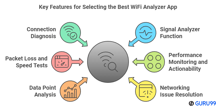 在Guru99,我们通过严格的内容创建和审查流程,致力于提供准确、相关和客观的信息。 经过 50 多个小时对 30 多个免费和付费WiFi 分析器应用程序的研究,我们为您带来了全面的指南。本文重点介绍了功能、优缺点和定价,这可能有助于您选择正确的应用程序。选择最佳 WiFi 分析器涉及评估用户体验、功能和易用性等因素。使用可靠的工具,您将深入了解网络性能。从而帮助您为您的业务需求有效识别和解决问题。