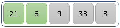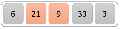 21 大于 9,因此我们交换 21 和 9 的位置。