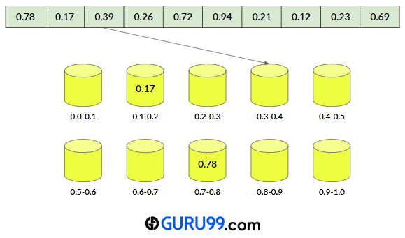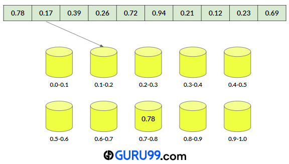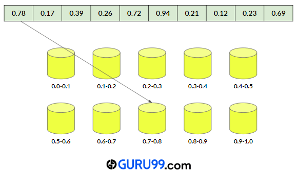因此,元素 0.78 将存储在 bucket[floor(7.8)] 或 bucket[7] 中。