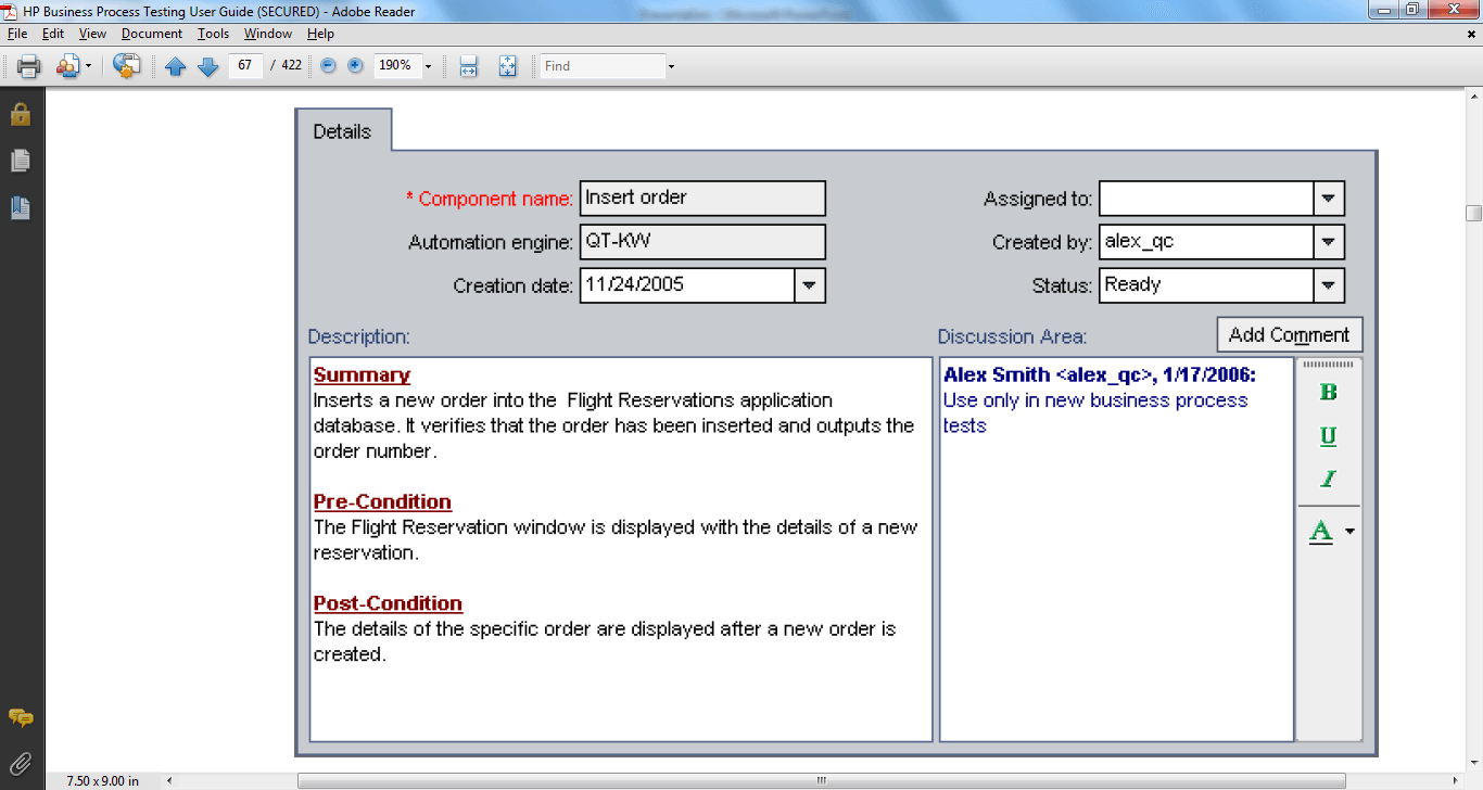 手动测试人员为所需功能设计手动组件,然后由自动化测试人员进行自动化。手动/自动化测试人员将这些自动化组件按顺序排列,形成 BPT,从而成为测试场景。