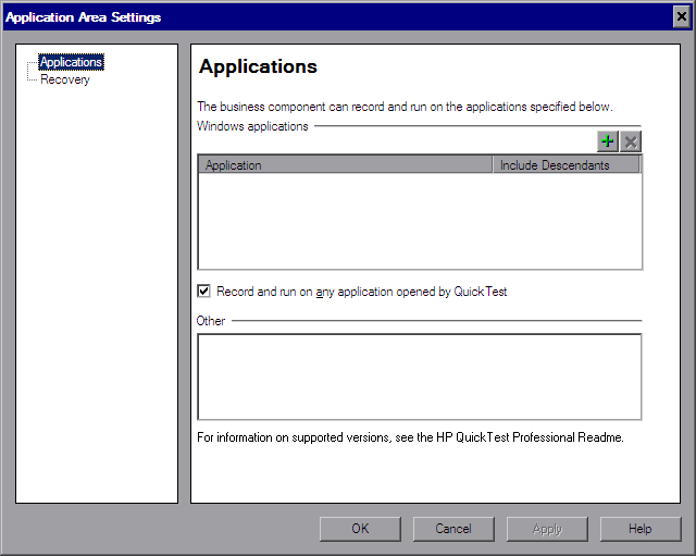 附加设置包含记录和运行设置,这与正常记录和运行设置以及 QTP 类似。