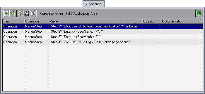 您可以像在 QTP 中使用关键字视图自动化组件一样自动化组件。自动化组件后,步骤将如下所示