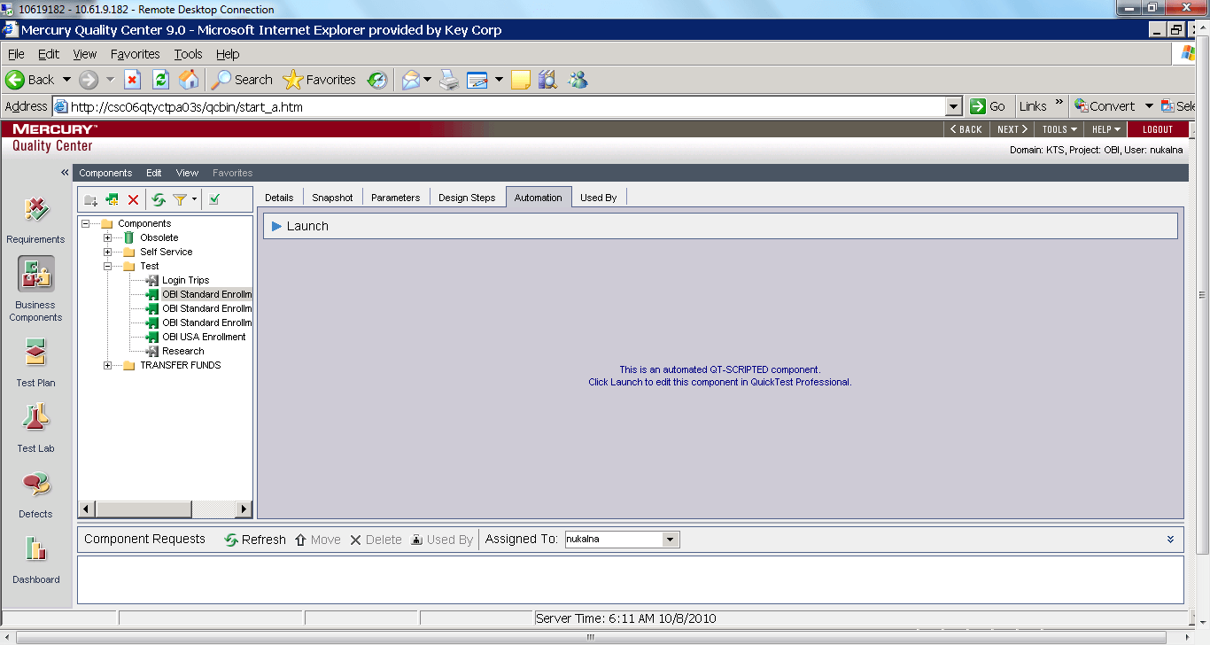 返回 QC 并导航到您要自动化的特定组件的设计选项卡。单击下方显示的自动化按钮,并选择转换为关键字驱动或脚本化组件。一旦组件转换为自动化组件,就无法将其转换回手动组件。