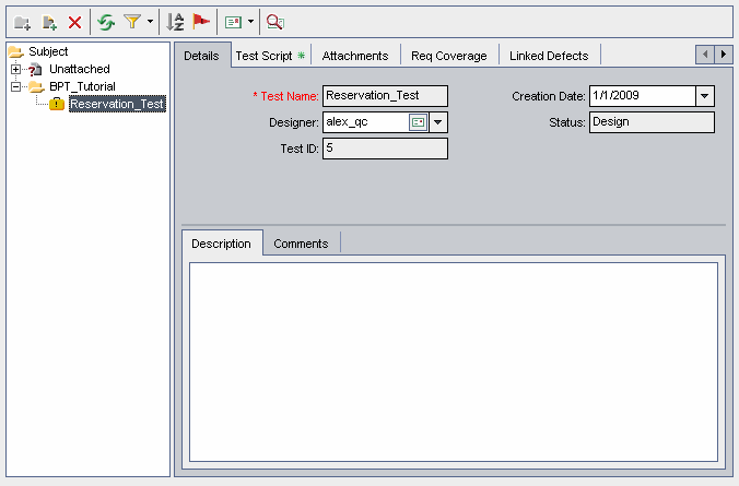 要创建手动或自动化 BPT,您必须使用 QC 中的“测试计划”模块。