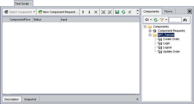 测试计划模块:在此模块中,您可以按逻辑顺序拖放组件以准备 BPT,这将形成一个测试场景,并且您可以调试组件。