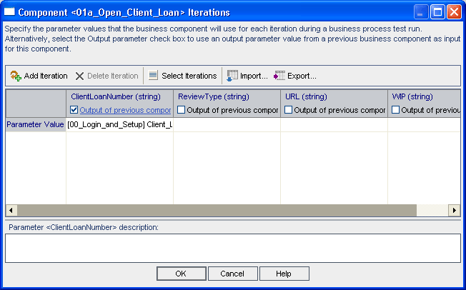 一旦您点击输入参数链接,组件迭代对话框将打开。